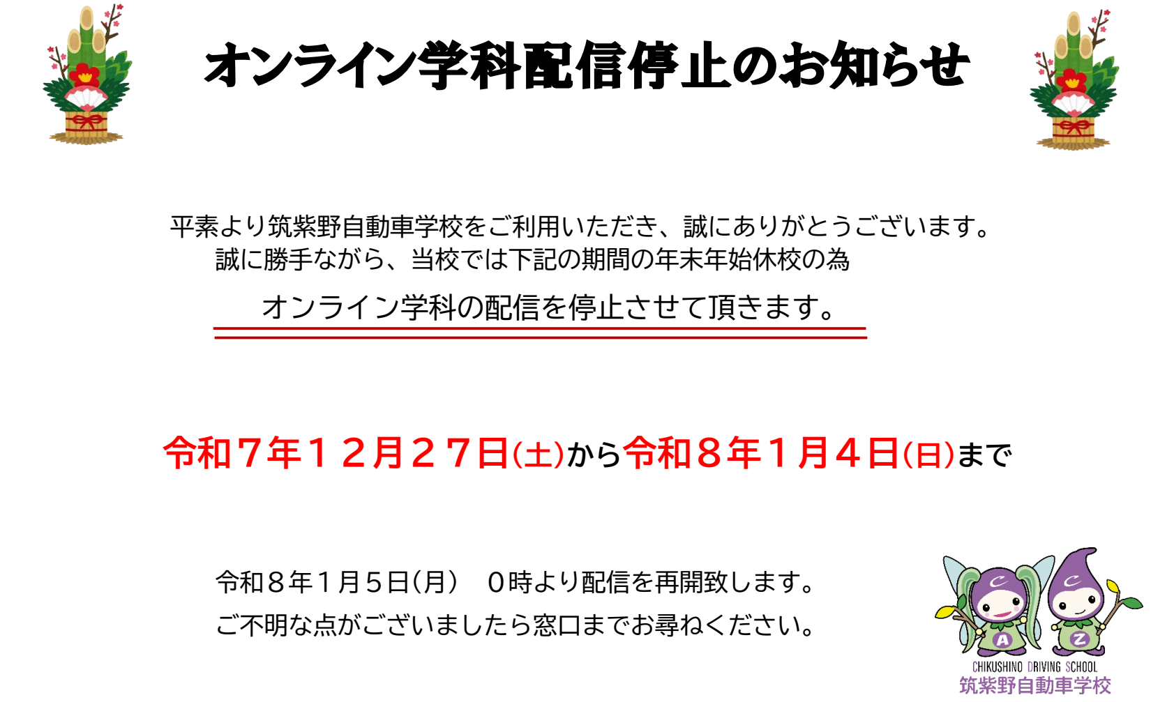 検定、教習、受付業務等すべての業務をお休みさせて頂きます。