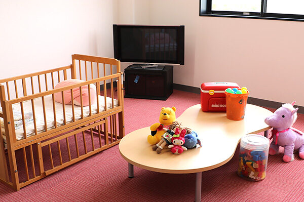 という忙しいお母さんの為に校内に託児所を設置いたしました!遊具も完備、ゆったり広々としたお部屋です。教習の合間に様子を見に行くこともでき空き時間には一緒に遊ぶことも出来ます。
